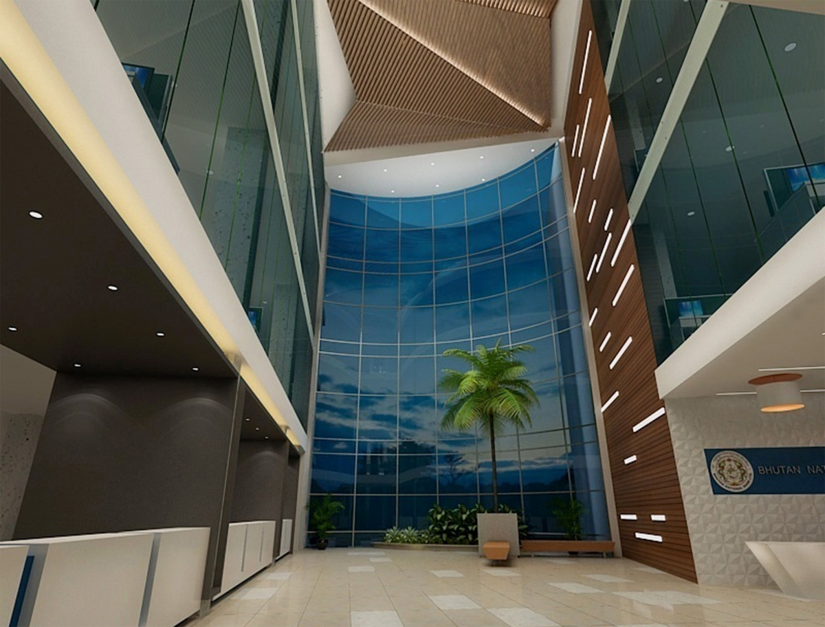 Bhutan National bank with an area of 86000sq.ft. is the first project of this scale in the country. This project is a complete design built one with a budget of 25 crore. The project is started to be modern but still portraying the spirit of Bhutan.