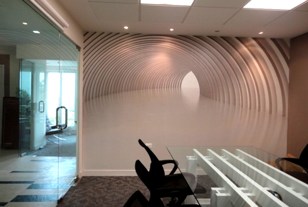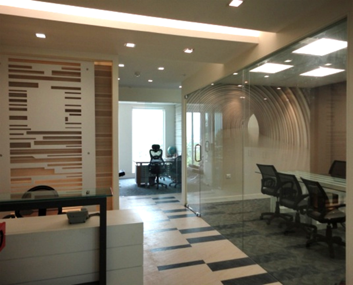 The finishes used here were very carefully selected and detailing done very minutely. This specific floor was the CEO’s floor with reception overlooking the conference room which had a 3D wallpaper to enhance the length of the conference room. The conference table was designed to be in glass top with P.U painted wooden base on carpeted floor.