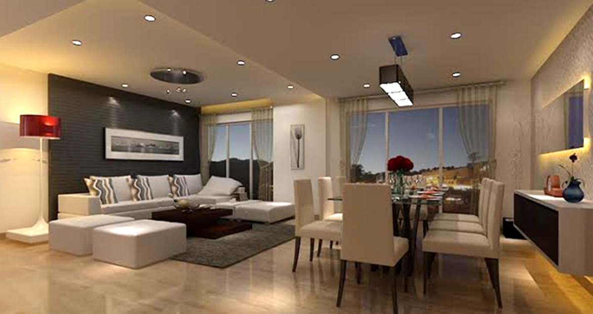 A key point involved in the design process of this sample apartment was to keep the philosophy of Astitva alive, to live a fresh life. A splash of bright colours here and there add the required zeal to the interior scheme. Not much articulation has been done to the finishes and flooring, keeping it simple but alive.