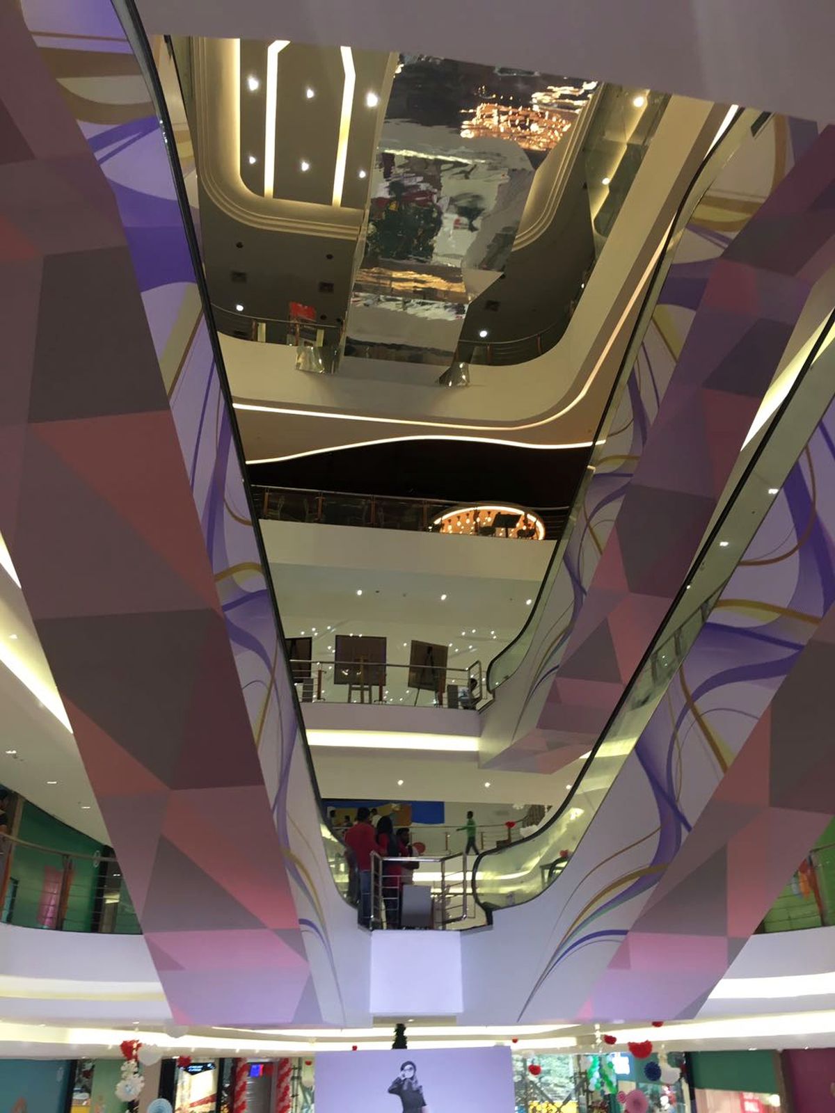 This mall has been developed into a destination not only for locals but also for the nearby travel enthusiast from Darjeeling and Gangtok. The mall's design was focussed to make it as a very modern, state of art mall with lot of live screens which always keep on changing and hence make the common areas always very lovely. The mall, as the name suggest also has a star s t u d d ed / co n s t el l at i o n cei l i n g d es i g n conforming to the theme of the mall. Over all very young happening ambience which has attracted huge foot fall on daily basis.