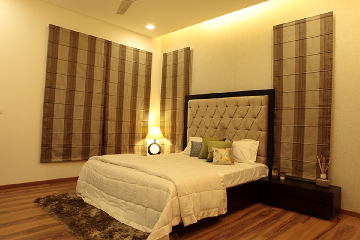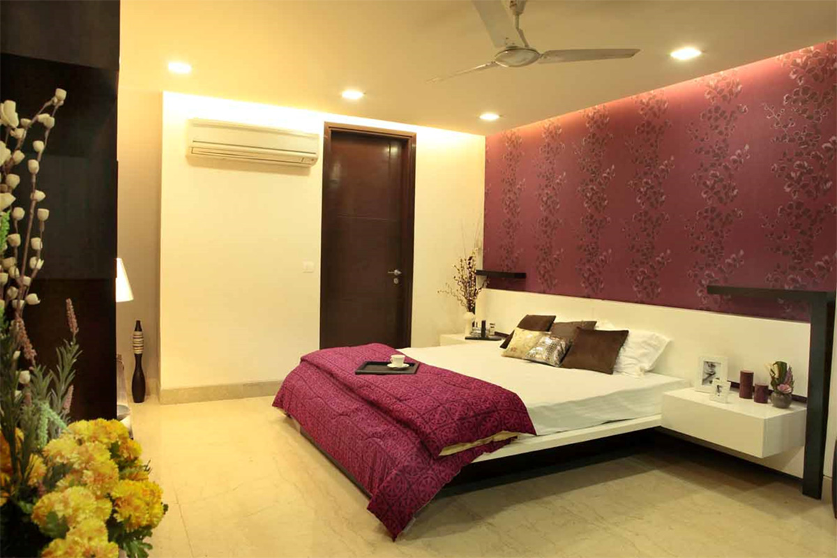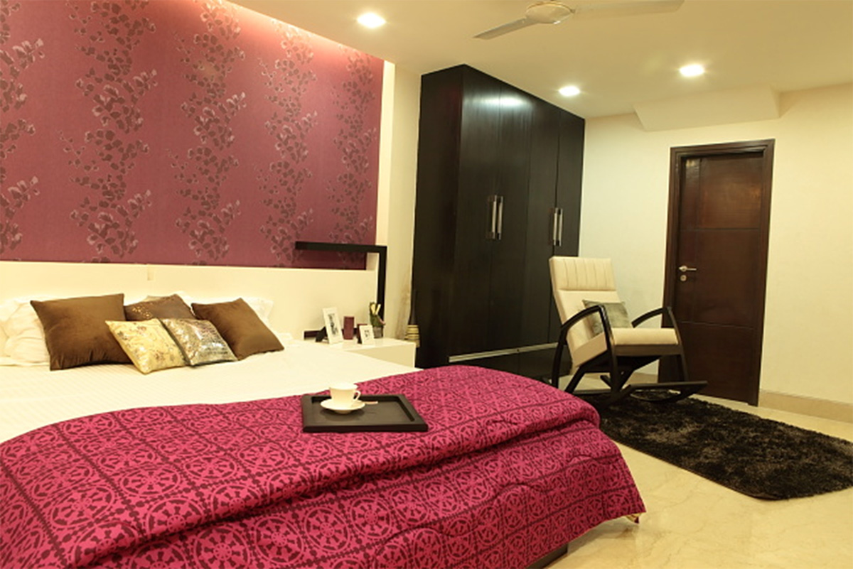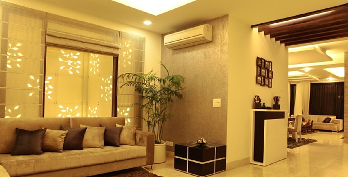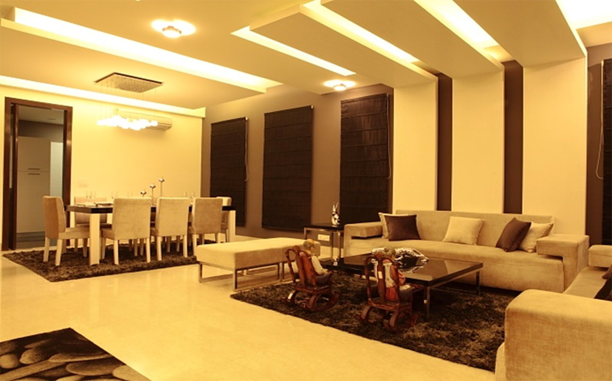 A different project in styling and approach, this project happened directly on site, without any drawings or reference. The highlight of the project is the shaft, which otherwise ignored becomes the piece of celebration furnished with Corian CNC cut screens, being made a part of the living and bedroom areas. Extreme detail has been given to the accessorising, with each piece being handpicked, adding that characteristic élan to this residence.