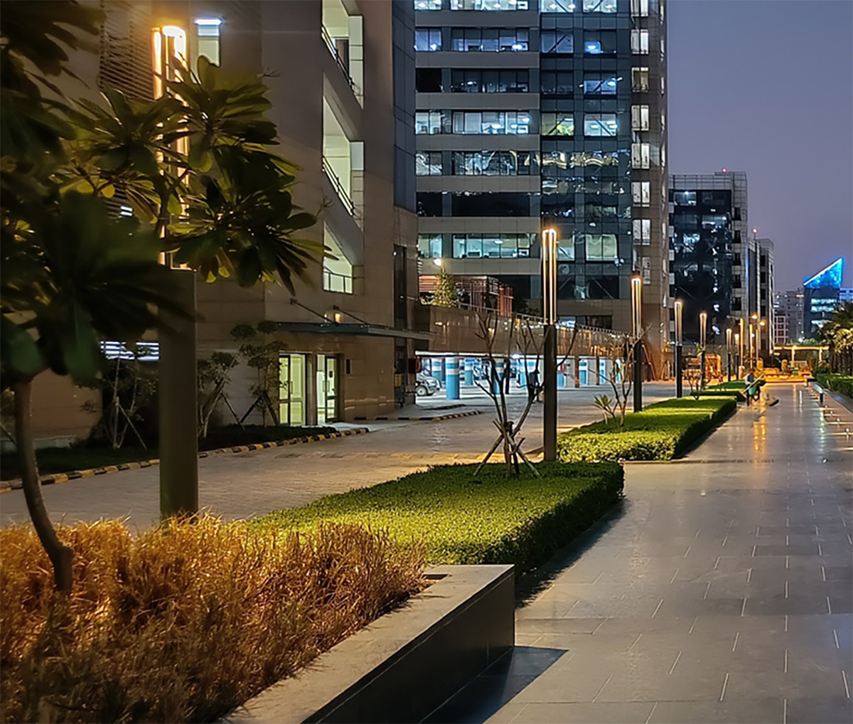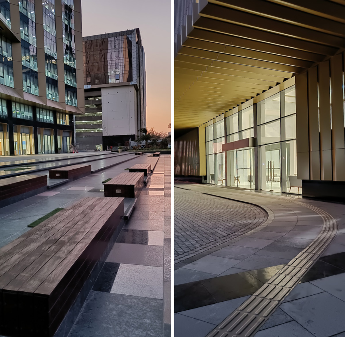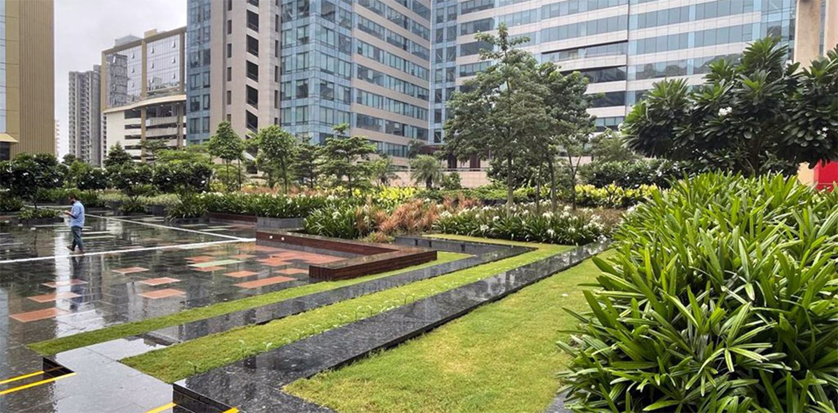 The dated appearance of this corporate park will soon be transformed with a sleek international urban statement. The new landscape plan includes a grand water plaza at the centre of the campus, reflecting the signature tower being designed by RBTA for the new extension center. This thoughtfully designed landscape will serve as a green oasis, enhancing the campus commons with microclimate comfort.