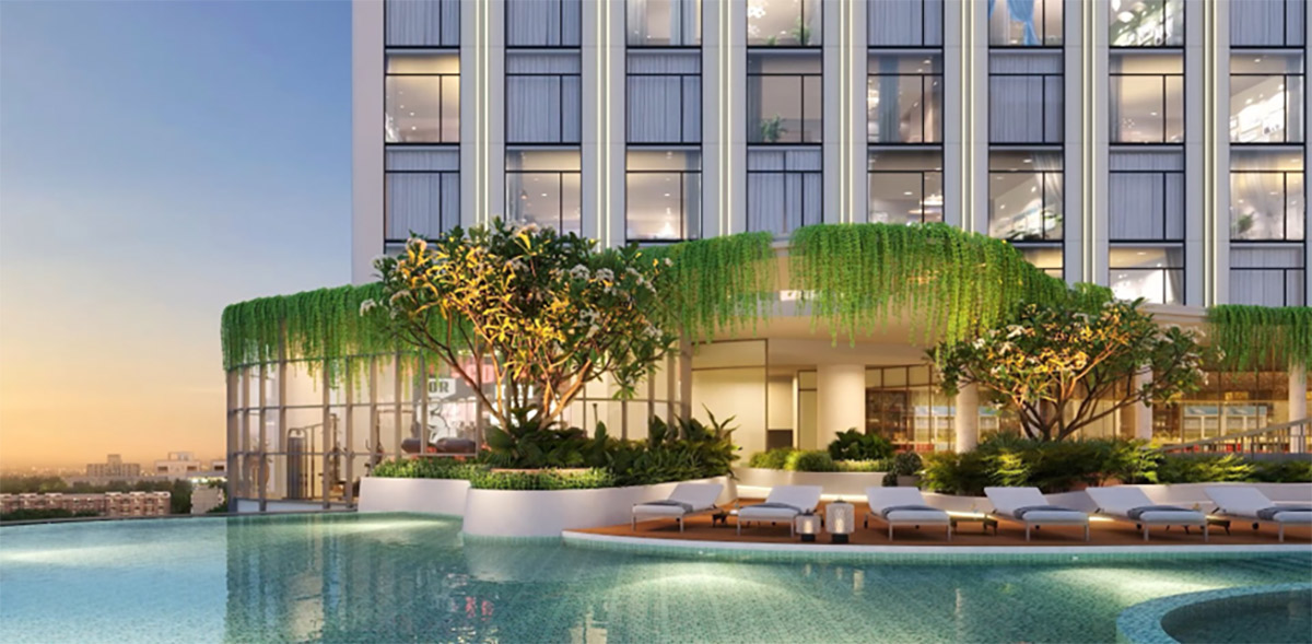 The office and hotel landscapes are spread across multiple terraces and gardens, featuring floating infinity pools, event banqueting spaces, a grand gallery lawn, wedding lawns, play courts, private garden terraces, and many more captivating corners.