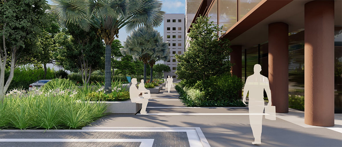 To match evolving expectations and the quality of outdoor amenities now being delivered in contemporary tech parks, SP Infocity is being upgraded comprehensively. Along with planned improvements to the interiors and façade, the landscape design proposes a state-of-the- art campus experience with crisp detailing, bespoke features, a carefully curated planting palette, and an enhanced arrival experience with outdoor amenity gardens.