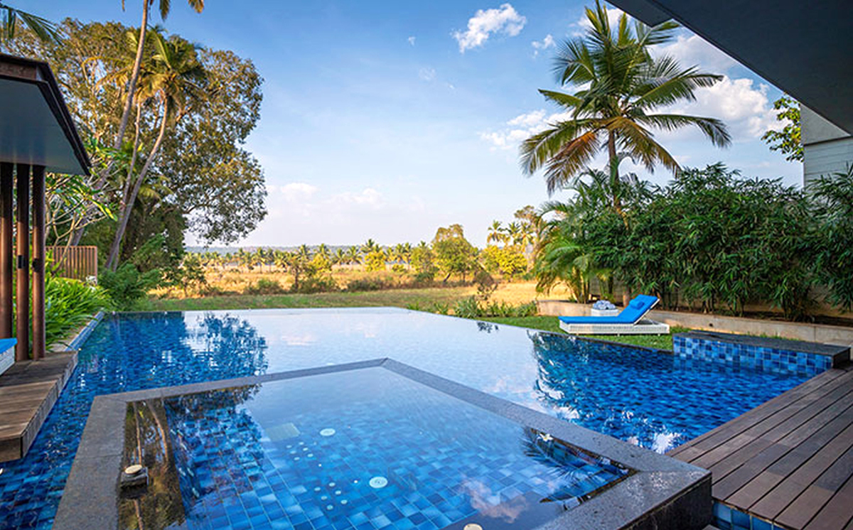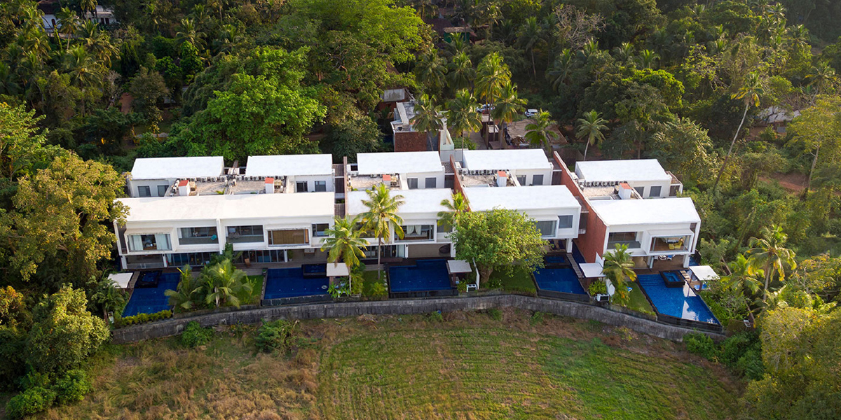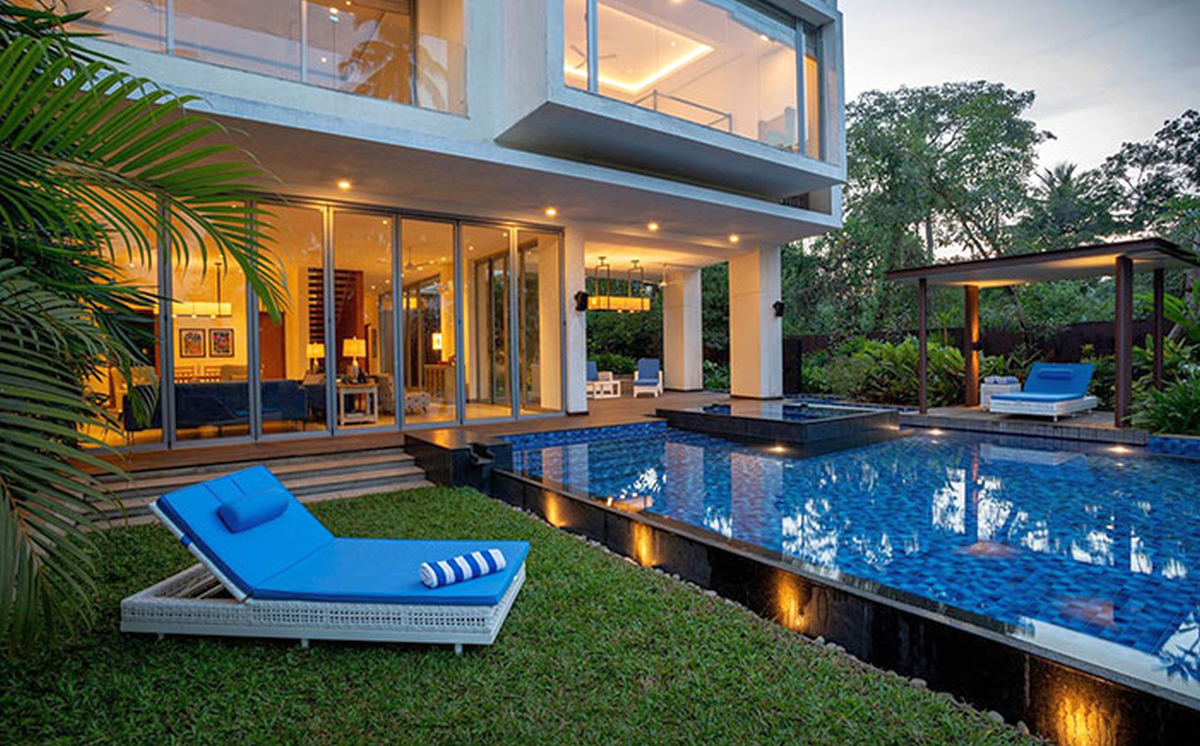 Nestled amidst the lush greenery of the Konkan region, Villa Encanterra embodies a minimalist design approach, aiming to create an abode in the ‘Rome of the East.’ Tranquility and harmony are key considerations in a site surrounded by a breathtaking landscape, enhancing its appeal and charm. With a simple yet refined design, the spaces have been thoughtfully developed as an ideal retreat for relaxation.